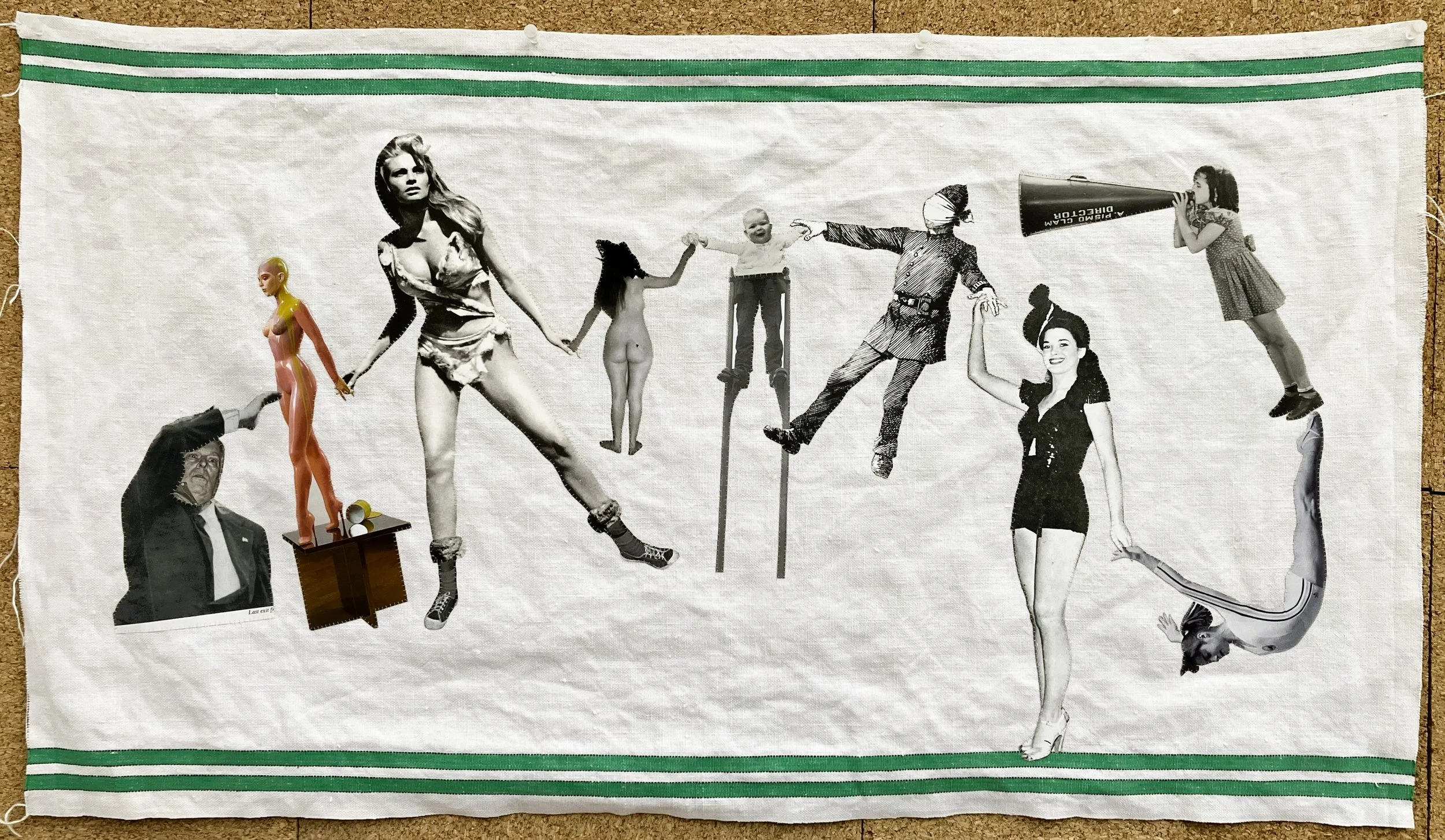 2020 with a cross through it, is because I was rejected from the Royal Academy Summer Exhibition. And also because 2020 was a complete write-off. An old sheet stitched to an ‘embarassing’ teatowel my friend threw away.