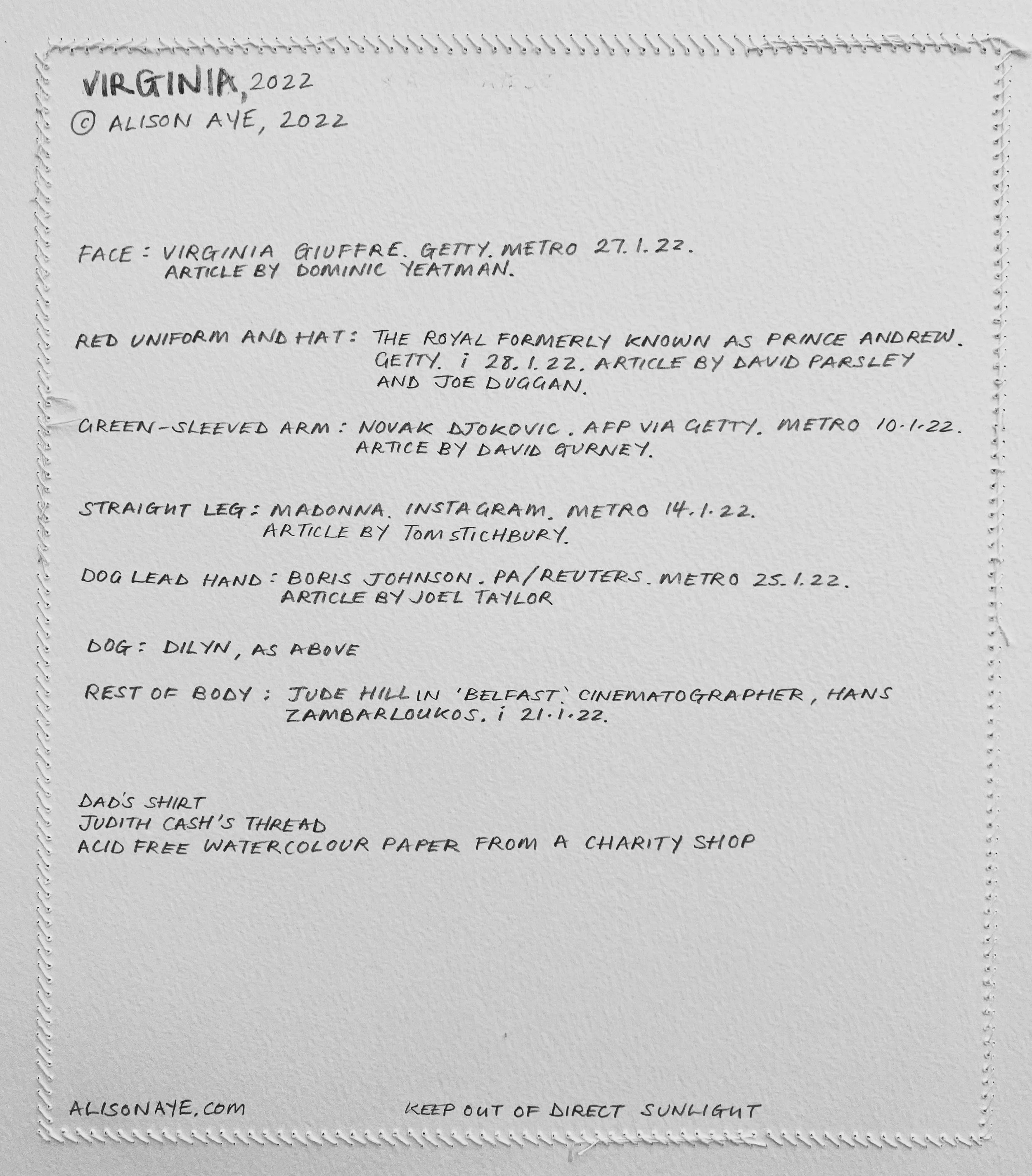 In Art Tags virginia guiffre, dominic yeatman, judith cash, andrew mountbatten windsor, david parsley, joe duggan, novak djokovic, andy murray, covid, david gurney, madonna, tom stichbury, joel taylor, boris johnson, dilyn, jude hill, belfast, kenneth branagh, hans zambarloukos, above the law, without fear or favour, judicial oath, justice, prince andrew, fear or favour, police attestation, subversive stitch, stitched art, stitched paper, handmade collage