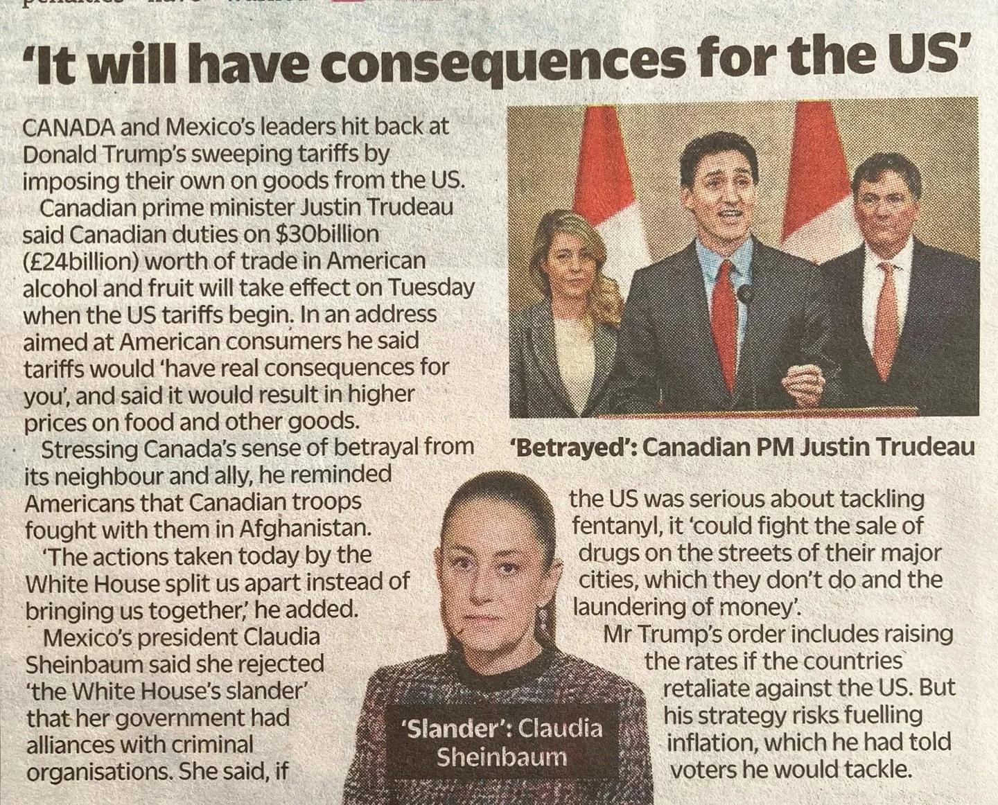 Day 33: Claudia Sheinbaum Metro 3.2.25. Photo uncredited. Mexico's president rejected 'White House Slander' that 'her government had alliances with criminal organisations'.