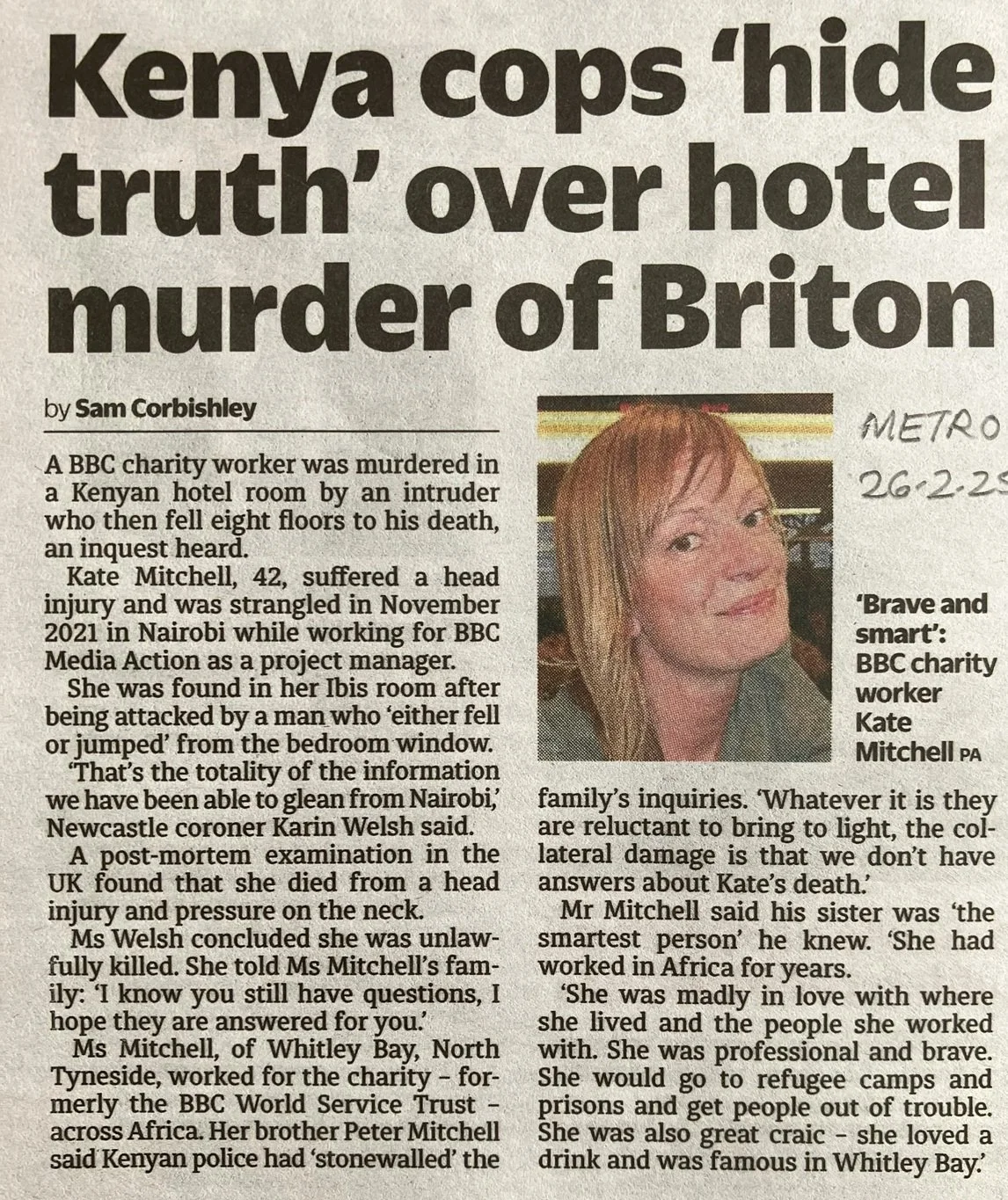 Day 56: Kate Mitchell, c1979 - 2021 Metro 26.2.25. Photo: PA*. Charity worker murdered in a hotel room.
