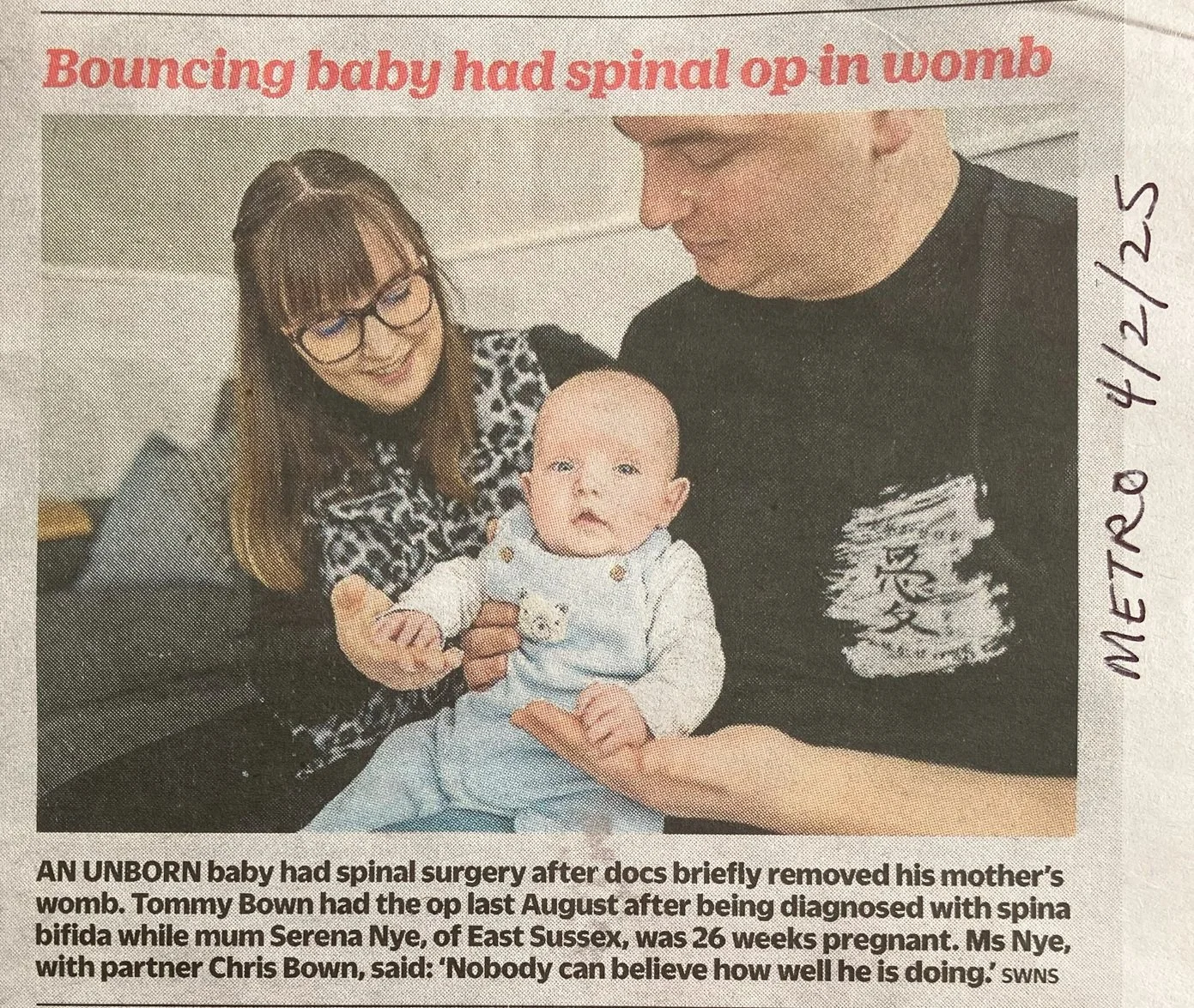 Day 34: Tommy Brown Metro 4.2.25. Photo: SWNS*. Had spinal surgery, before being born, and 'nobody can believe how well he is doing'.