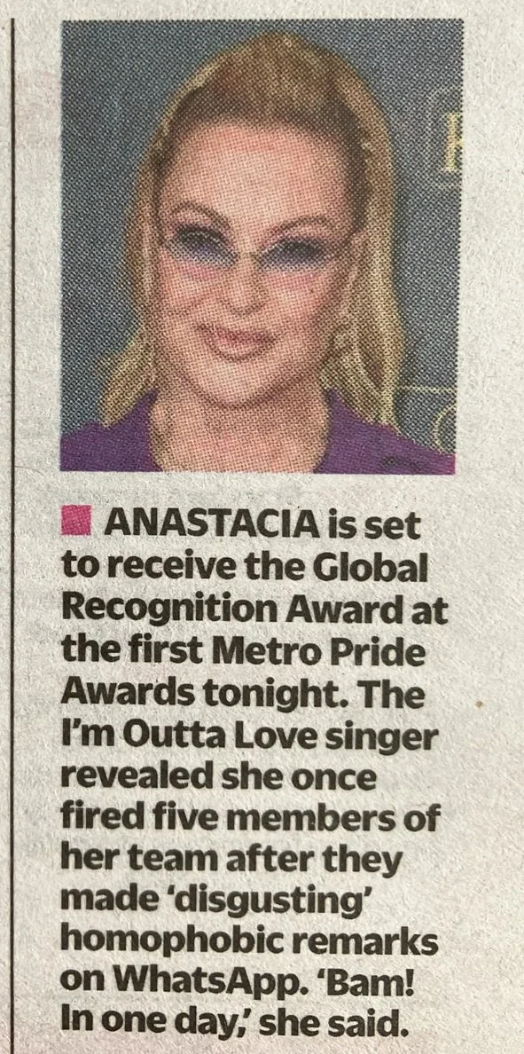 Day 53: Anastacia Metro 26.2.25. Photo uncredited.