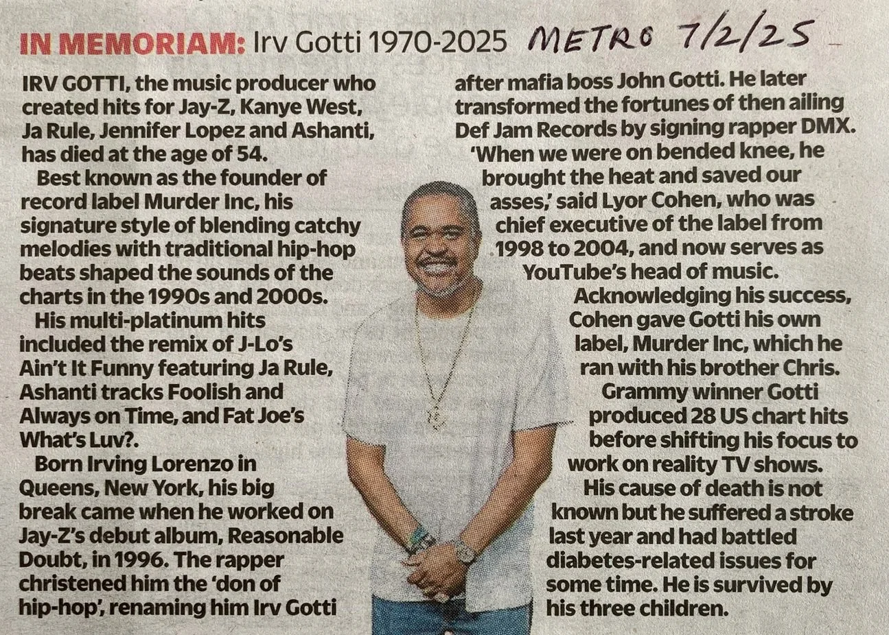 Day 40: Irv Gotti, 1970 - 2025 Metro 7.2.25. Photo uncredited.
