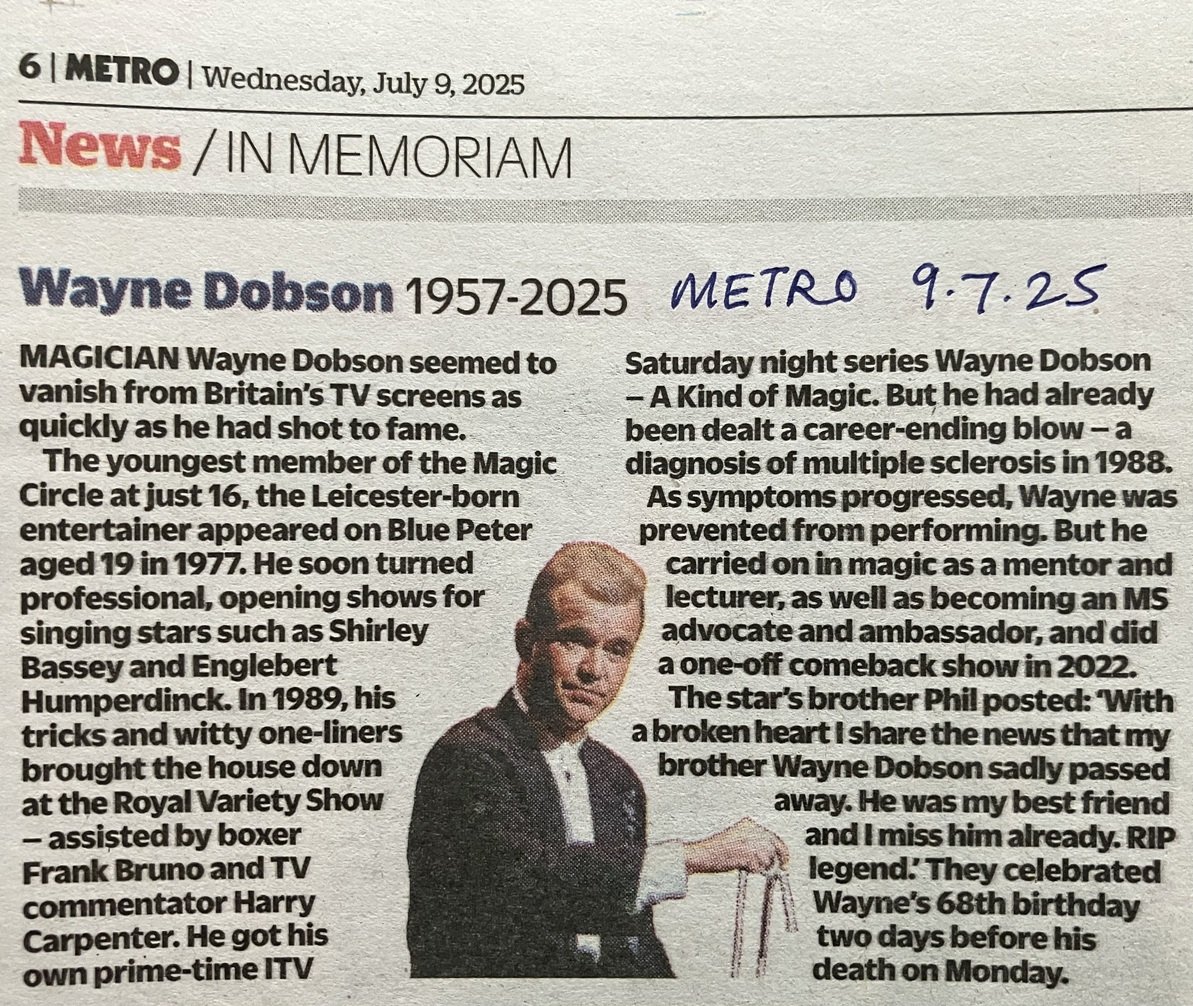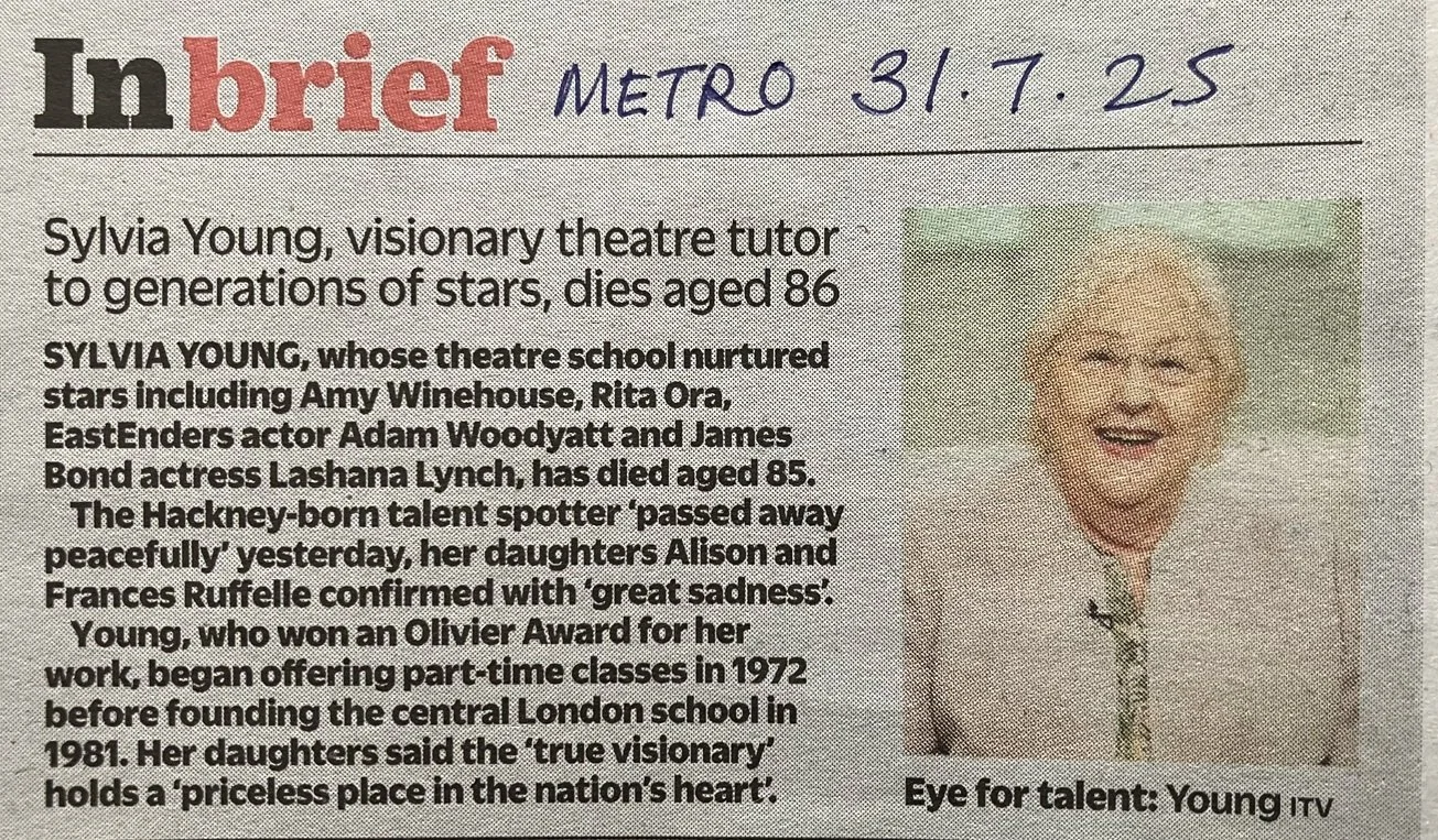 Day 212: Sylvia Young, 1939 - 2025 Metro 31.7.25. ITV*.