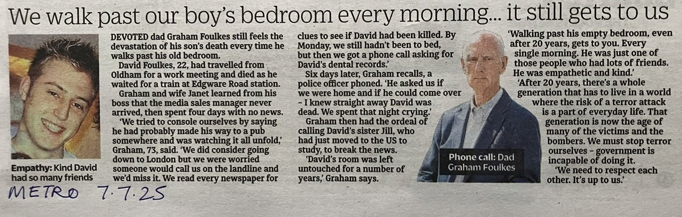Day 185: David Foulkes, c1983 - 2005 Metro 7.7.25. Photo uncredited.